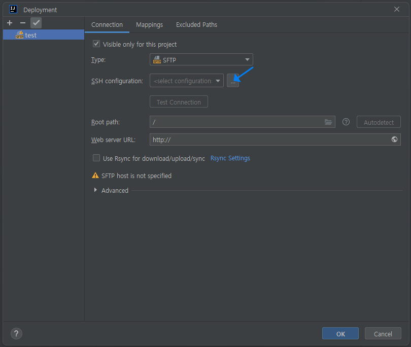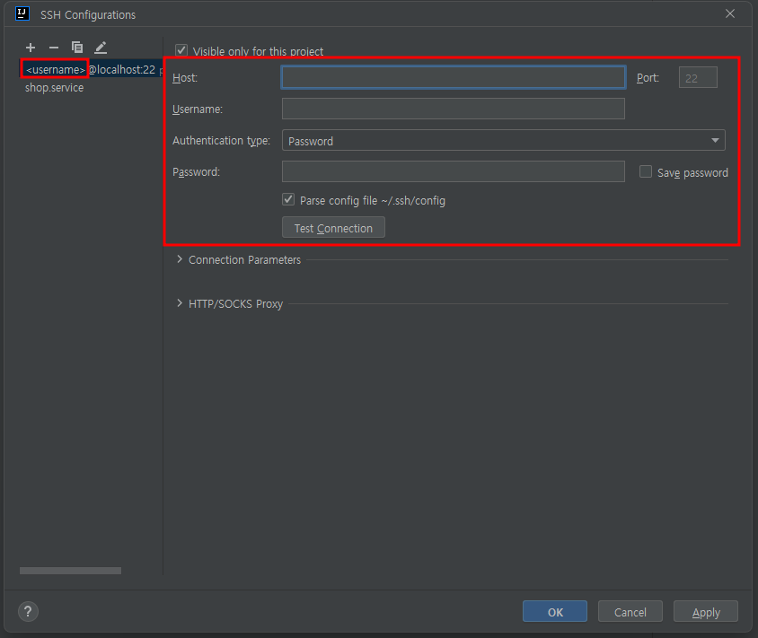 - <username>@localhost:22... : ssh 커넥션에 이름을 지정