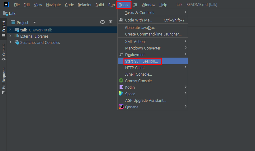 개발은 IntelliJ IDEA를 사용하고 있어서 해당 개발 도구에 ssh 연결에 관한 기능이 없을까 하고 찾아보다가 발견하게 되어