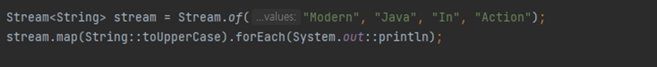 Stream.of를 통해 스트림을 만드는 예제 코드를 작성해 봅시다.
