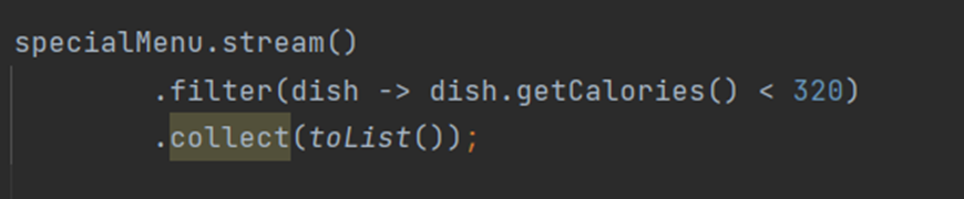 takeWhile은 320보다 크거나 같은 칼로리를 발견하는 순간 반복을 멈추고 스트림을 반환합니다.