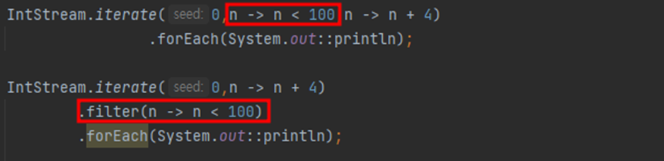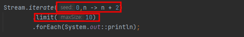 - 무한한 개수의 요소를 가진 스트림을 무한 스트림, 언 바운드 스트림이라고 불림