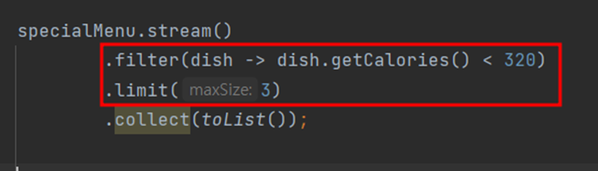 정렬되지 않는 스트림(데이터 요소가 Set인 경우)에도 limit를 사용할 수 있습니다. 소스가 정렬되어 있지 않으면 결과도 정렬되지 않은채로 반환됩니다.