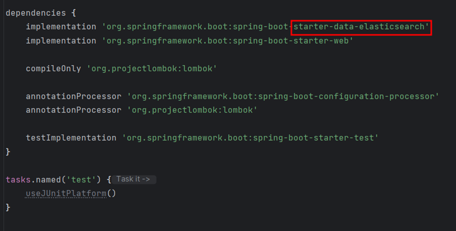 그래서 빈 등록을 저렇게 해둔 거였는데 Build.gradle 파일을 살펴보던 중 제가 Spring data Elasticsearch를 의존성에 추가해둔 사실을 발견했습니다…