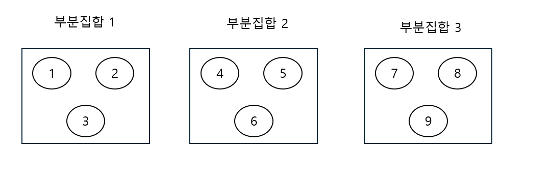 각각의 요소들은 서로 다른 집합에 포함되어 있고, 각 집합들은 교집합을 가지지 않습니다.