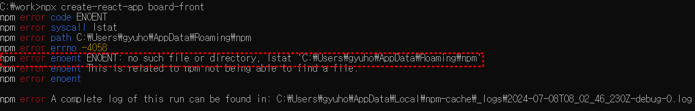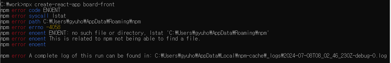 아마도 이 경로에 npm이라는 폴더가 만들어지지 않아서 생긴 문제인것 같아서 만들어주었습니다.