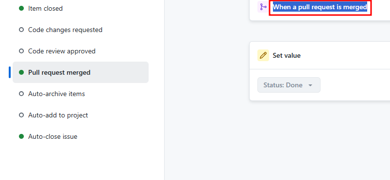아마 이 부분인 것 같은데 pr 이 병합이 될 때, close # 이슈번호 했던 것을 Done 상태로 바꾼다는 의미인 것 같습니다.
