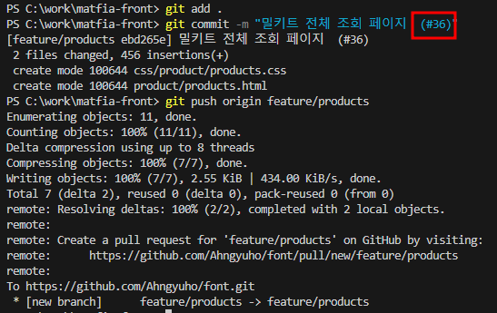 커밋 메시지에 이렇게 이슈 번호를 넣어주게 되면 해당 커밋이 어떤 이슈에 관한 작업인지 쉽게 확인 가능하기 때문에 넣어주었습니다.