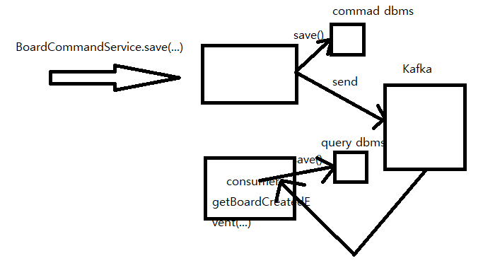 BoardCommandService → Kafka (이벤트 브로커) → BoardQueryService (Read Storage)