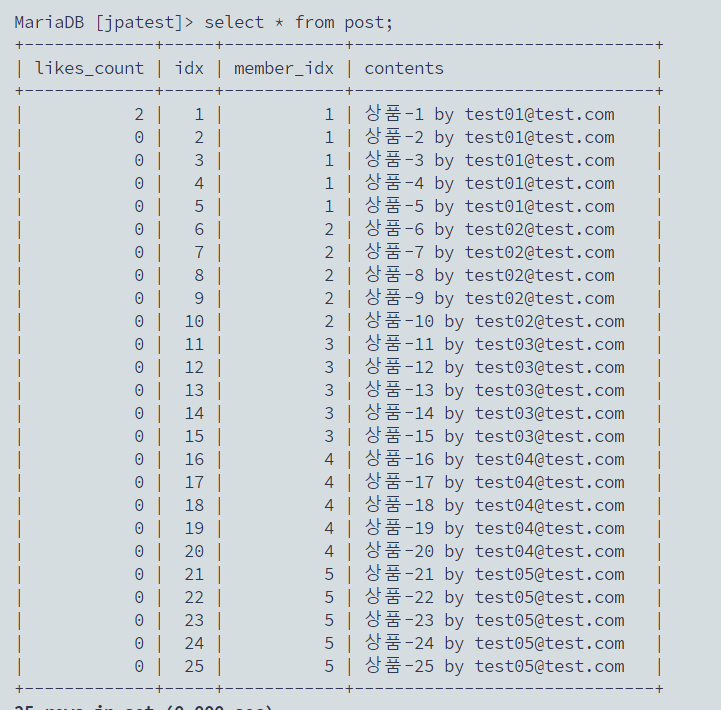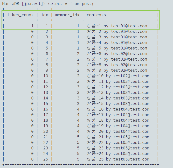 결과는 2개의 count 가 되어야 하는데 1로 나옵니다.