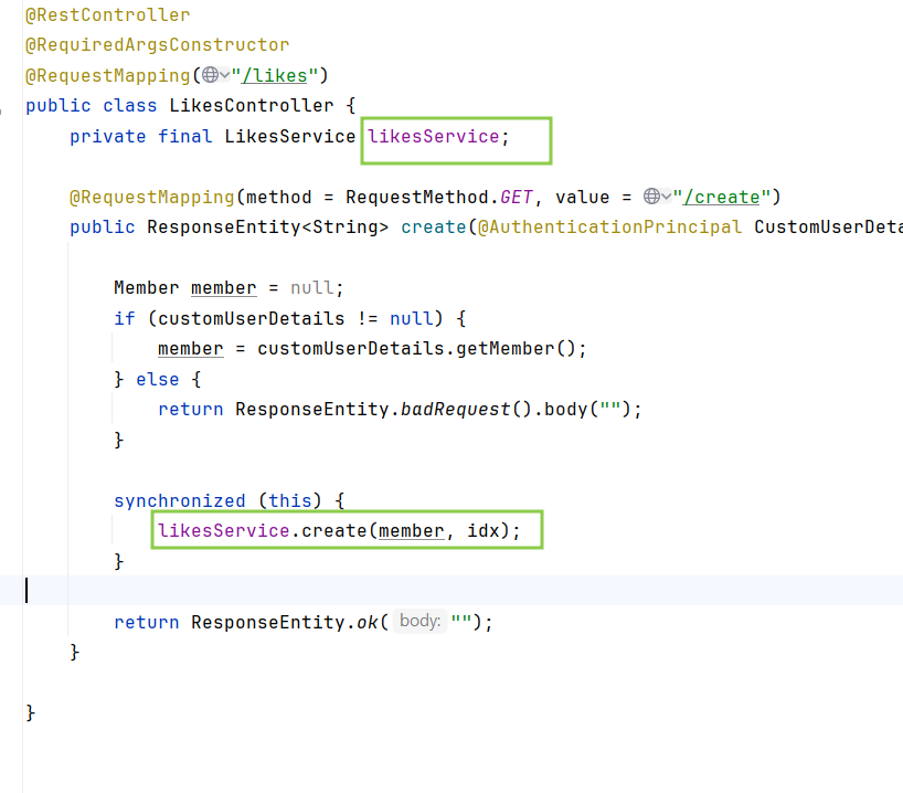 두 개의 요청을 보내고 순차적으로 각 스레드에 걸린 브레이크 포인트를 실행하면 동시성 상황을 만들 수 있습니다.